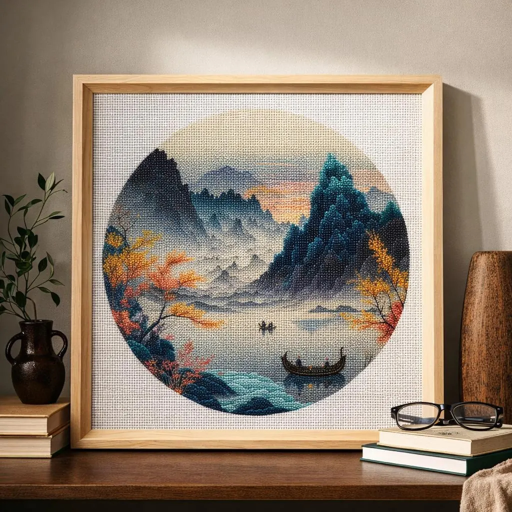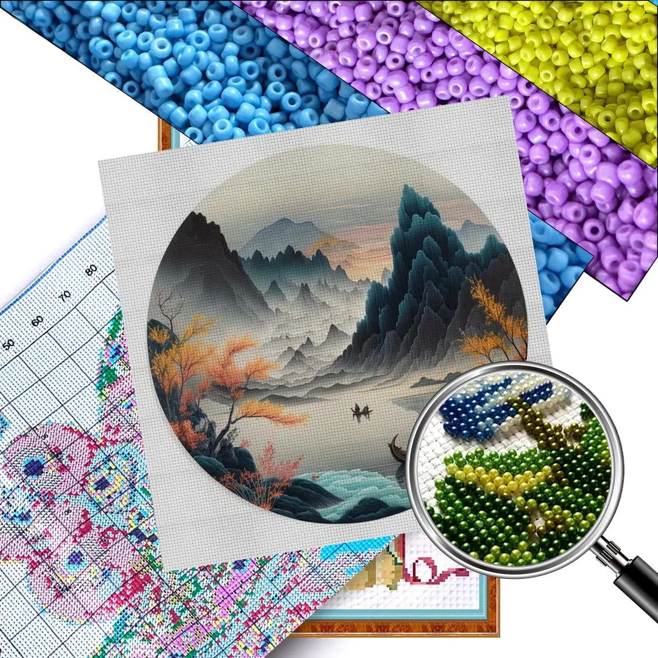 This DIY bead embroidery kit features a serene landscape design with misty mountains, calm water, and warm autumn trees. The pre-printed full-color fabric is easy to follow, while the seed beads add depth, texture, and detail to the finished artwork. A beautiful choice for relaxing craft time, home décor, or gifting.