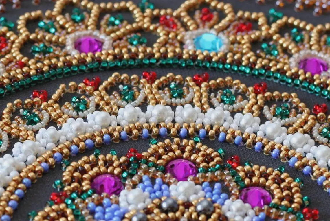 This DIY bead embroidery kit features an intricate mandala circle design filled with rich colors and ornamental detail. The pre-printed full-color fabric is easy to follow, while the microbeads and decorative stones add texture, shimmer, and depth to the finished artwork. A beautiful choice for relaxing craft time, statement décor, or gifting.