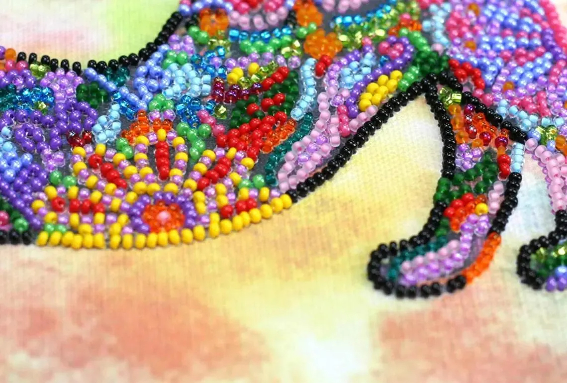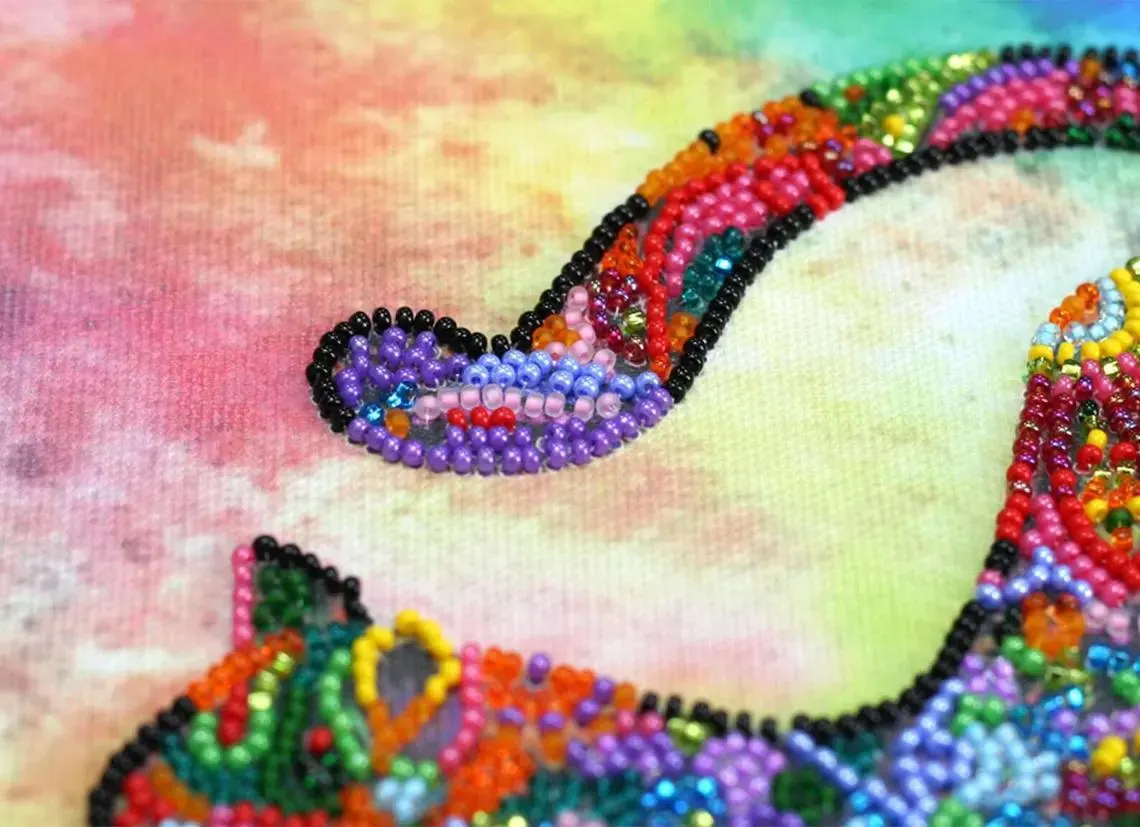 This DIY bead embroidery kit features a vibrant stretching cat design filled with colorful floral-style patterns. The pre-printed full-color fabric is easy to follow, while the beadwork creates a bright, textured finished piece. A fun choice for relaxing craft time, creative home décor, or gifting.