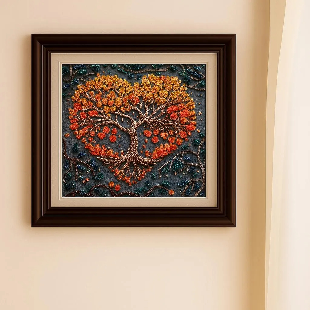 This DIY bead embroidery kit features a beautiful heart-shaped tree design in warm autumn tones. The pre-printed full-color fabric is easy to follow, while the microbeads and decorative stones add texture, shimmer, and depth to the finished artwork. A lovely choice for relaxing craft time, seasonal décor, or gifting.
