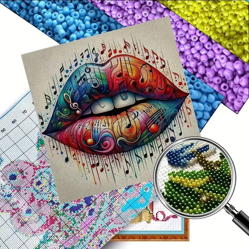 This DIY bead embroidery kit features a bold lips design filled with colorful music notes and artistic detail. The pre-printed full-color fabric is easy to follow, while the seed beads add texture and depth to the finished artwork. A fun choice for creative craft time, unique wall décor, or gifting.